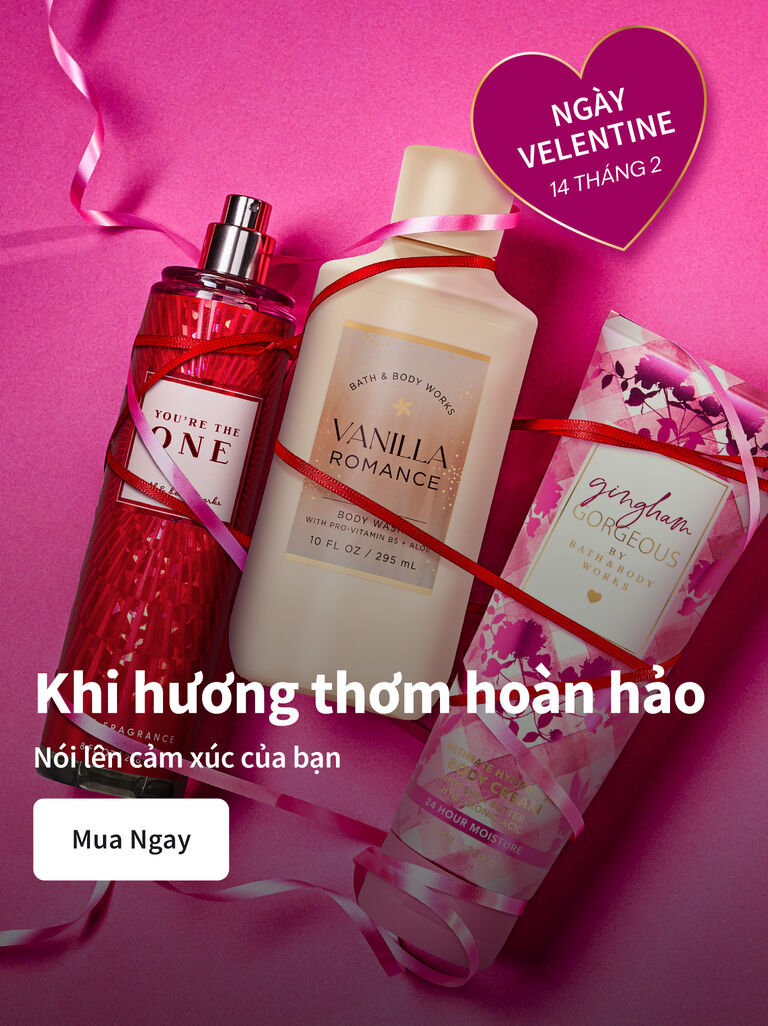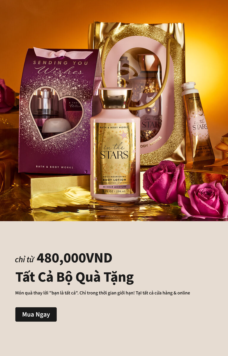 Bath and Body Works là điểm đến lý tưởng cho những món quà và sản phẩm đầy bất ngờ và thú vị. Từ các hương thơm tươi mới đến các sản phẩm chăm sóc da dịu nhẹ, chúng tôi mang đến cho bạn một trải nghiệm tìm kiếm điều đặc biệt đầy niềm vui và kỷ niệm đáng nhớ. Đang tìm kiếm những sáng tạo theo mùa mới hay những mùi hương yêu thích đã ngừng sản xuất? Chúng tôi cũng có tất cả cho bạn. À! Và trong khi bạn đang tham quan, hãy khám phá bộ sưu tập mới nhất và tuyệt vời nhất của chúng tôi về các loại sữa dưỡng, xà phòng và nến nhé!